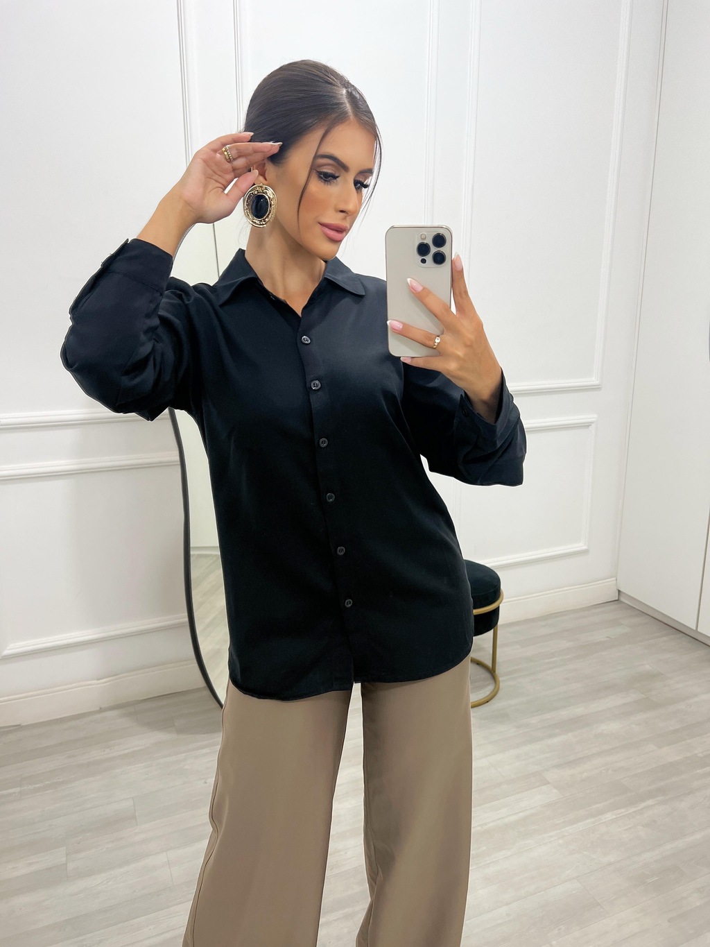 A Camisa Slim Aurora é a escolha perfeita para quem busca estilo e conforto. Confeccionada em tecido viscose sarjado, esta peça apresenta um caimento ajustado que valoriza a silhueta feminina.